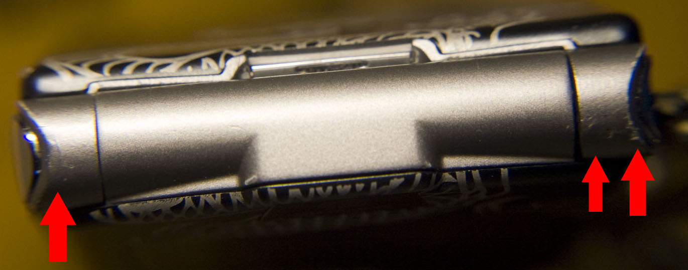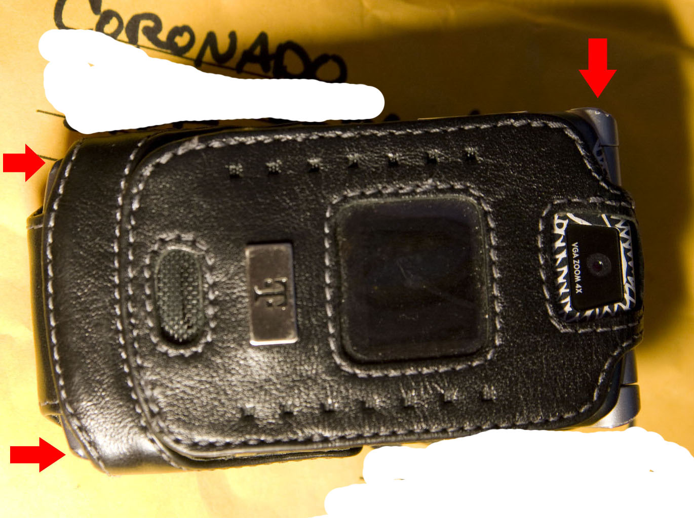 1. Partial refund to be agreed upon by both buyer and seller. Evidence of heavy use and abuse by seller (dropped on all four corners, etc.) are shown in these pictures of an “in perfect condition” phone. The hinge is very wobbly denoting heavy usage or abuse as well. I have two other different color Razr’s obtained in better condition from eBay which I have compared this phone with. Belt clip was not sent with leather holster and that is normally included with holster. OR 2. Seller will refund $72 + return Fedex Ground charges (approximately $8.50 with tracking number and insurance for buyer protection) to buyer first. Buyer will send Razr and accessories back to seller. OR 3. If #1. or #2. is not agreed upon on or before September 5 when the buyer must pay Paypal Buyer Credit (GE Consumer Finance) for this purchase, buyer will chargeback the amount to GE Consumer Finance and send supporting information to them (email correspondence, pictures, and this webpage). final email regarding this webpage of evidence sent through eBay messaging system on September 2, 9:45 a.m. PDT |