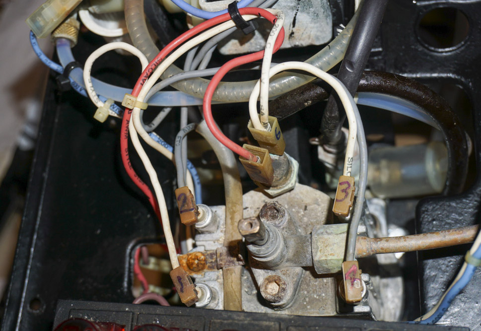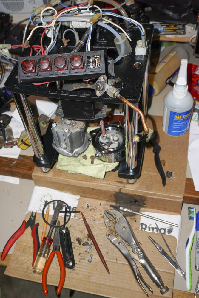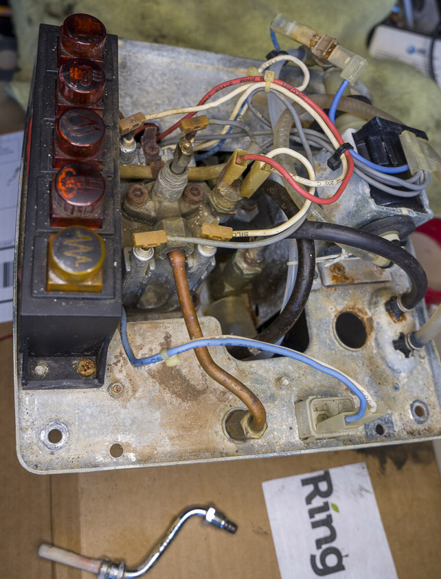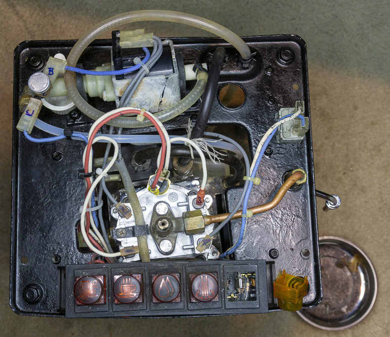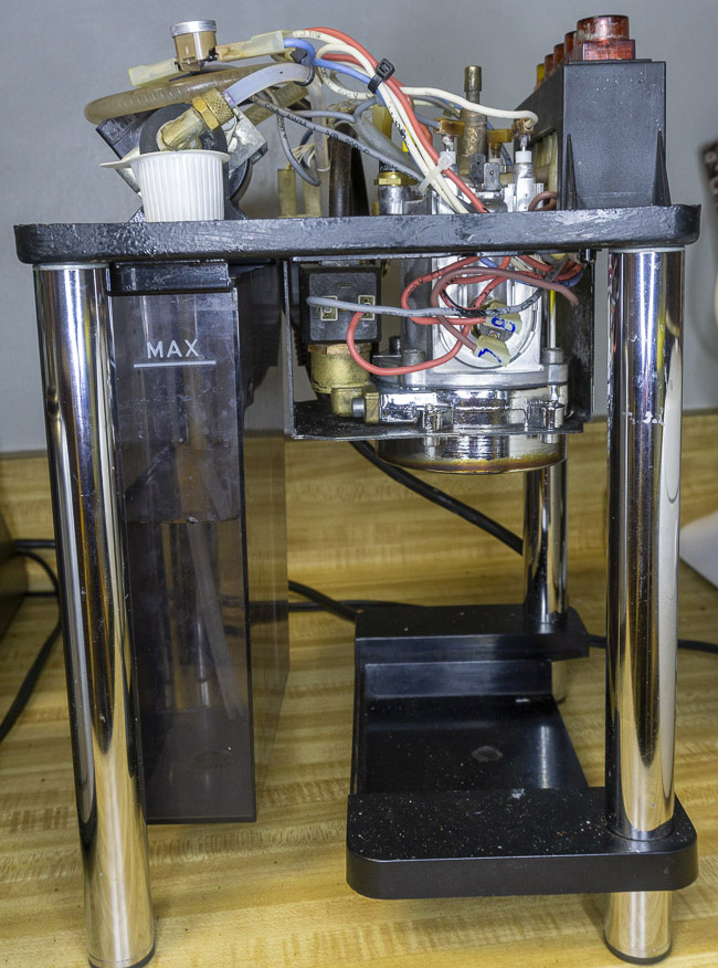 In May 2020, water was leaking between the boiler and the group head. It is a simple job to order a gasket set to replace all the consumables. Twisting off one of the boiler’s rusted on connectors broke the terminal just beneath the ceramic isolator. Using nippers, I got an 1/8” of it to show. The steam thermostat plastic cap broke when trying to pull off its connector. Due to a leak from the steam wand, I wanted to inspect the steam valve. Both the allen bolts loosened and Liquid Wrench was dripped on. One loosen, the other broke off. Using a vise grip broke off another piece. As there was condensation from the steam valve, most everything on top of the boiler was rusted and stuck. At this point, I ordered a new boiler, steam thermostat, and an O-ring set from Nomar Supply in Houston. While waiting for the shipment, I got rid of the rust from the allen bolts, tubing clamps, and terminals with Naval Jelly. Two M6 x 20mm stainless steel bolts were cut to 15.5mm with a Dremel cutting disk - astronomy spares. Assembly was the reverse of disassembly. The steam valve was flushed earlier with a citric acid solution so it drips very little now. The steam from the wand is stronger and froths milk in 1/3 the time. There is still a bit of steam escaping between the steam valve body and handle from fully closed to fully opened. I need to protect the top of boiler connections and the now painted inside top from condensation and rust.
