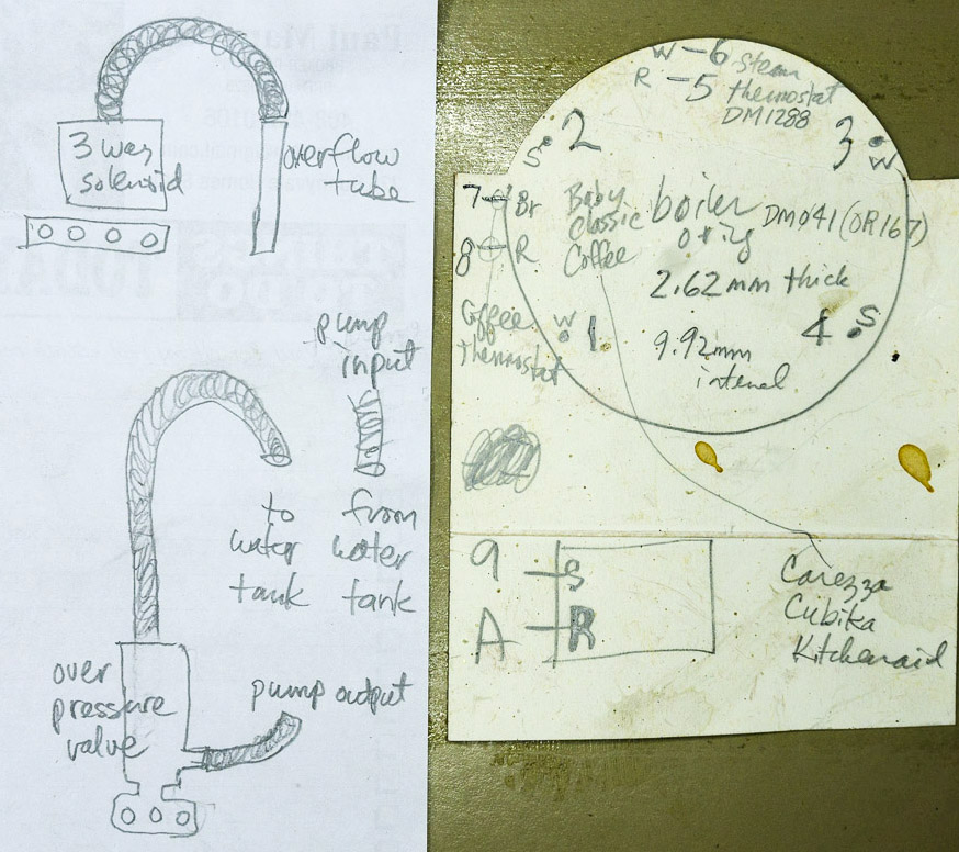 December 2025 - During the last month, steaming has been erratic and weak to nothing at times. The pump for the last few months had only engaged after 2-5 seconds after pressing the coffee switch. A new steam thermostat rated at 145°C with thermal grease fixed these two problems. Steam is now strong and consistent; even the coffee temperature is back to original. December 2023 - Mixed a couple of tablespoons of citric acid with a liter of water and ran it through the Gaggia to descale. Followed that up with pushing 2 liters of water to flush out the solution. November 2023 - Water did not come out of the grouphead, but steam came out from the wand. The cause is a bad 3-way solenoid coil - it does not activate with a click when power is applied. No dealer has it is stock and eBay was about $55 + shipping from Europe. It was also difficult to find just the solenoid coil. A Froogle search turned up a $21 price for the coil at Blue Star Coffee. They are near Galway, Ireland. Even with shipping, it was the least expensive solution. They only carry complete 230v solenoid valves. A bit of trivia - we unknowingly drove by this business in Kilcolgan during our September 2019 vacation to Ireland and Northern Ireland. A 52w spare pump EFP5 was ordered and 2 blue silicone grouphead gaskets as well.